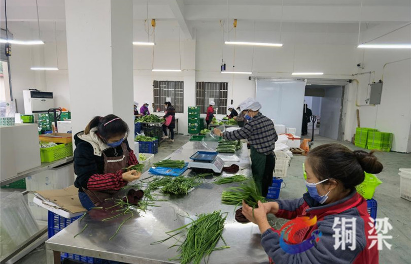 近日,在銅梁區(qū)侶俸鎮(zhèn)保鄉(xiāng)村,蔬菜配送中心寬敞的車間里,工人們正在對白菜、萵筍、蒜苗等蔬菜進(jìn)行分裝加工,一片紅火忙碌的景象。“疫情常