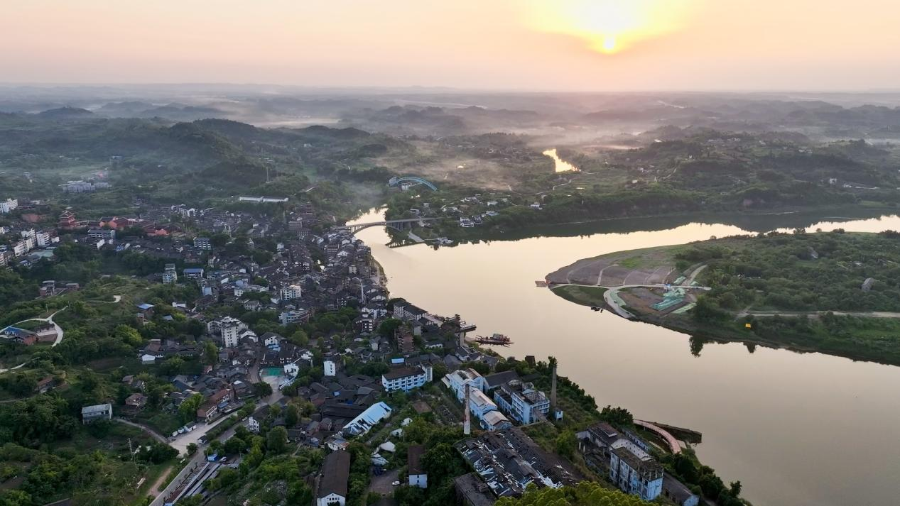 8月19日,涪江邊的安居古城沐浴在落日余暉中。錯落有致的房屋、蜿蜒的街道,還有美麗的安居國家濕地公園,呈現出一幅寧靜而美好的鄉村畫卷。