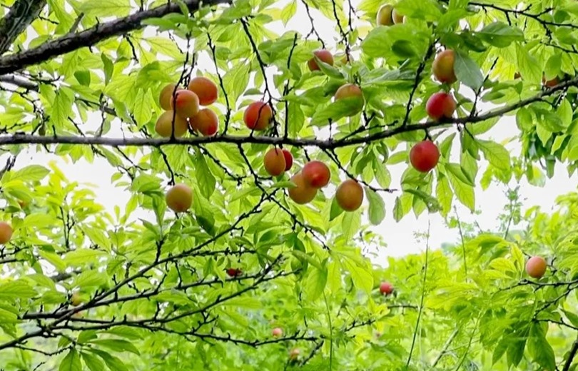 株株李樹上掛著一個一個色澤金黃的李子。摘下一個品嘗,味如蜜甜,口齒留香。